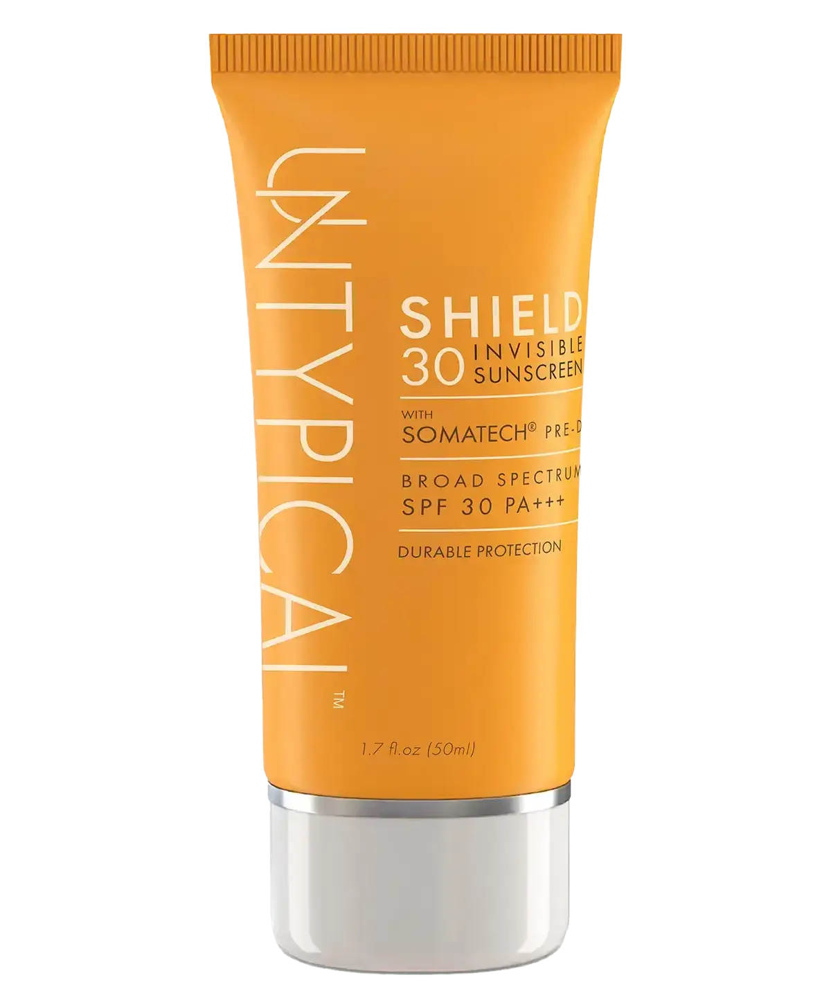Shield yourself from harsh sun exposure by embracing the power of nature with Untypical Shield., This world-first blend promotes hormonal Vitamin D production without the full damaging exposure to UVB rays by delivering targeted ingredients precisely where and when you need them most. Additionally, this advanced formula offers broad-spectrum UV protection while promoting collagen production, deeply hydrating your skin, and diminishing fine lines and wrinkles. Safeguard your body's largest organ, the skin, and enjoy the protective, rejuvenating benefits of optimal Vitamin D hormone balance in the skin!